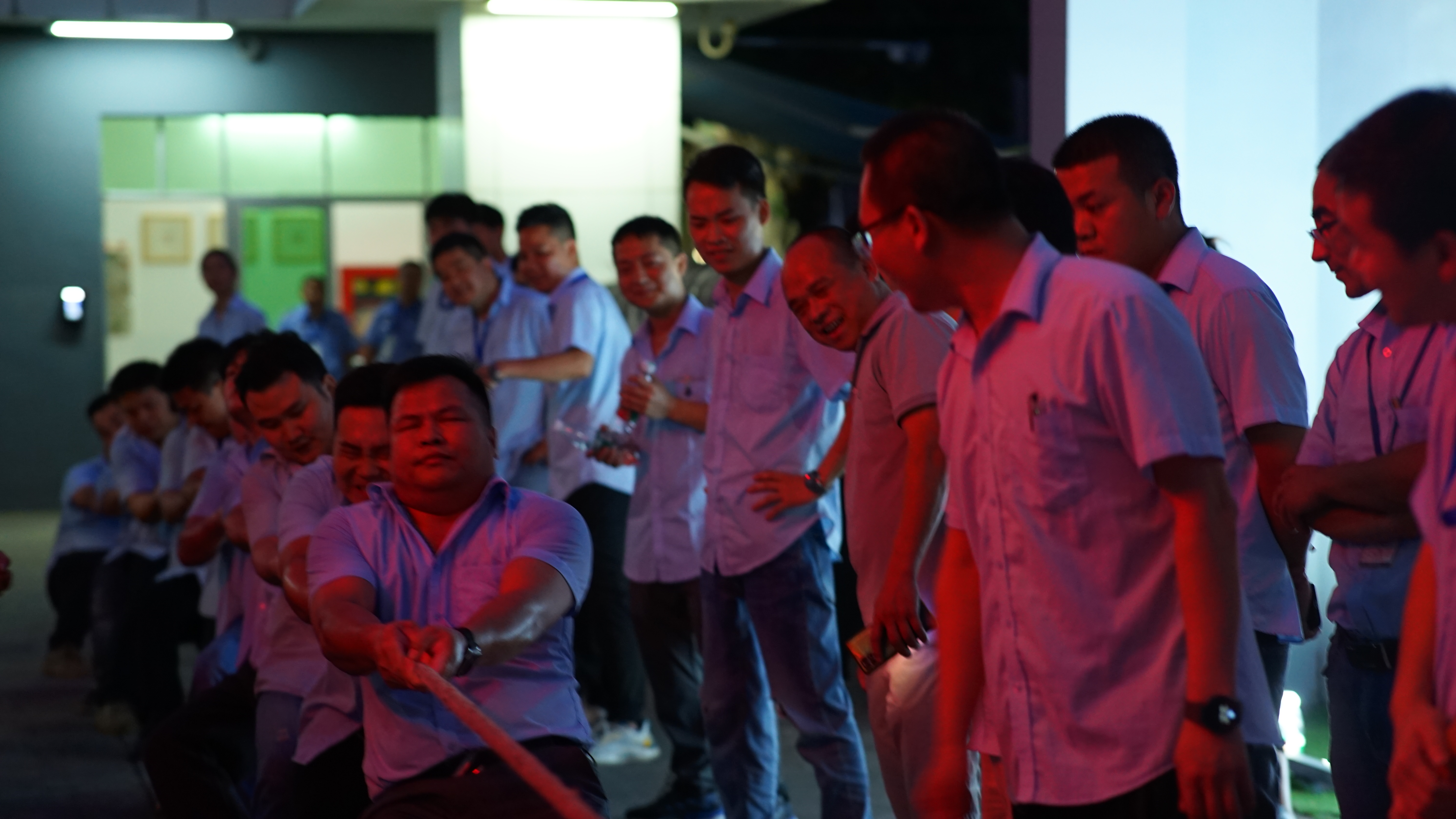 本次趣味运功会包括:拔河、跳绳、面粉接力、“三人四足”接力跑等四个比赛项目。最吸引人的要数拔河比赛了。来自模具、注塑、喷涂、组装、精雕和平台6个部门组建的8支代表队参加了比赛。随着裁判一声哨响,竞技双方你争我夺,互不相让。参赛队员个个铆足了劲,一旁的观众也是情绪高涨,为自己的队伍鼓劲加油。呐喊声、加油声、欢笑声不绝于耳。
